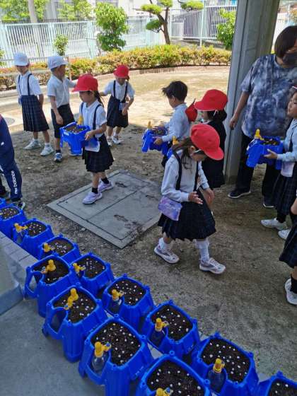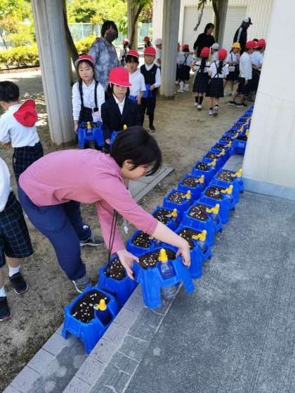 鉢に土を用意してアサガオの種をまきました。これから水やりをして育てていきます。