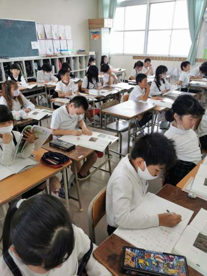 説明文を構成を確認しています。はじめ、中、終わり。要点を読み取る学習につなげていきます。