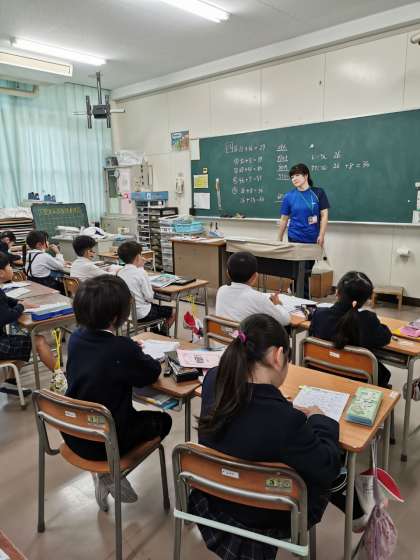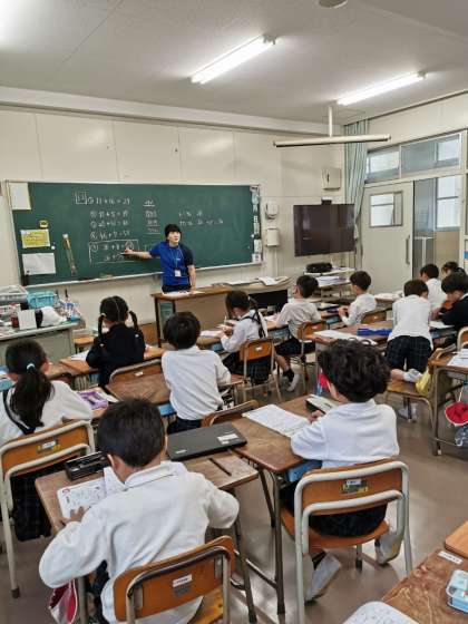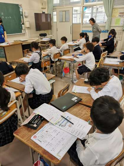 お話の問題を考えるとき、お話の順番に沿った式を立てる必要があります。そうでない式を書く子がいたようであらためて考える時間をとっています。