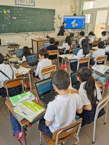 モンシロチョウの成長について学習しています。動画でみたり、デジタル教材で細かくみたりしています。