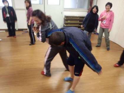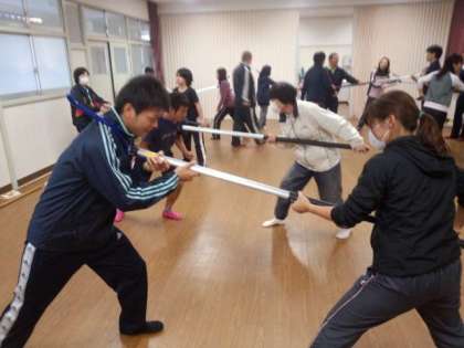 木曜日に防犯訓練に合わせて、さすまたの使用方法と不審者が教室内に入ってきたときの対処方法などについて、西淀川警察署の方から教わりました。