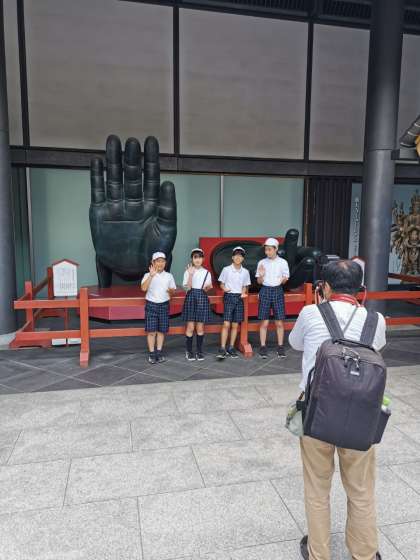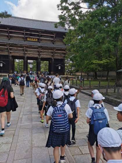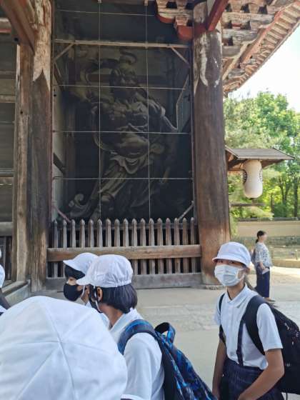 東大寺に行きました。最初はシカに目がいきましたが、ここにしかないいろんなものを目の当たりにし、大きさや雰囲気に感じるものがあったようです。