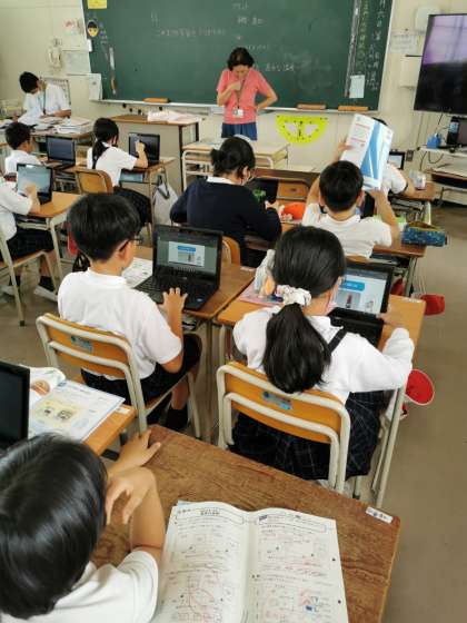 学習のまとめを教科書にあるQRコードを読み取って出てくる練習問題でしています。