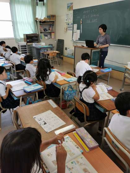 お話の問題から、この問題は何算の問題かを考えています。大事な言葉を見逃さない子がたくさんいました。