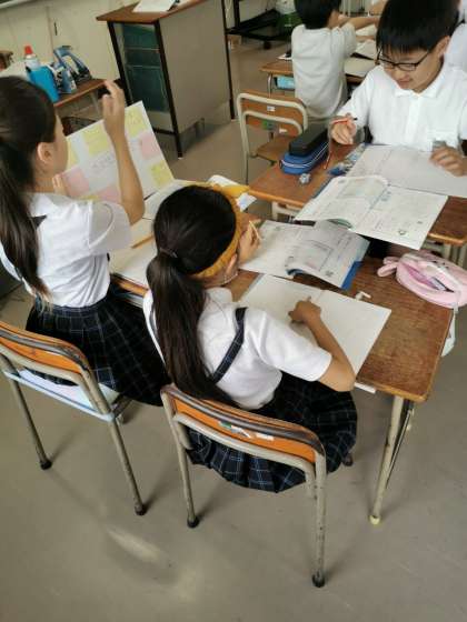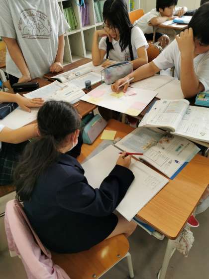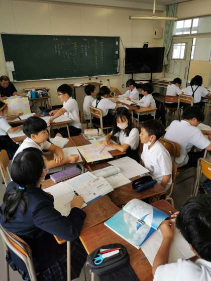 地域の魅力を伝えようということで、歌島地域のいろんな場所をテーマに、グループでポスターに事実や意見をまとめています。