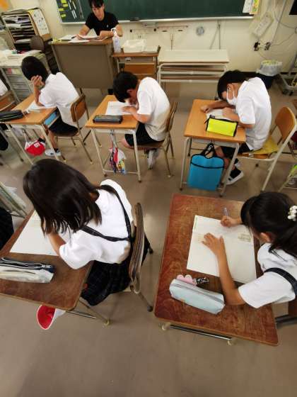 テストをしています。今日のテストは音声を聞いてそれについて答えるという問題をしています。料理の作り方を聞いてそれについての質問しているという設定での問題です。