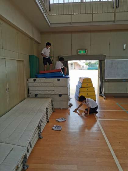 クリーン作戦で快適にという学習の一貫で今日は講堂の清掃をしました。普段掃除しない場所も念入りにしてくれています。
