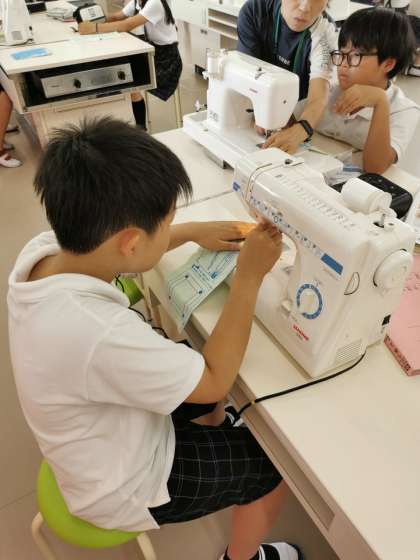 ミシンで縫う練習をしています。なみ縫いに加え返し縫いまで練習しています。
