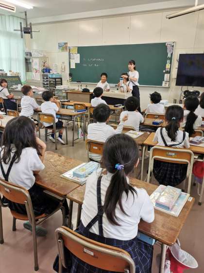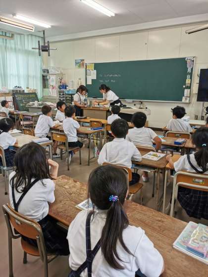 水筒やコップの大きさが違うと「多い」「少ない」が分かりにくいです。具体的な例から、水のかさの測り方についての学習をしています。