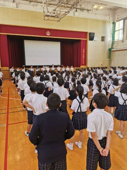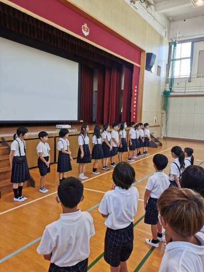 代表委員の人たちが、いじめをなくそうということで活動してくれています。今朝の全校朝会で「歌島小学校いじめを許さない合言葉」をあらためてみんなで再確認しました。また、お昼の給食の時間にも放送してくれました。