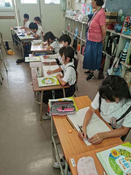 3年では2種類の花を学習園で育てています。今日はその花の様子の観察をしました。