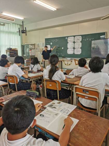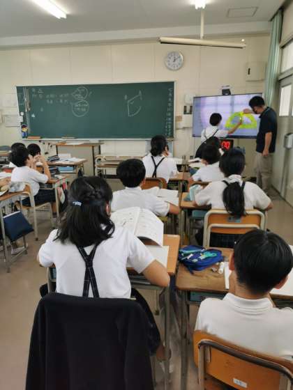 合同な図形の学習をしています。2つの合同な図形の辺や角を確かめています。