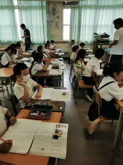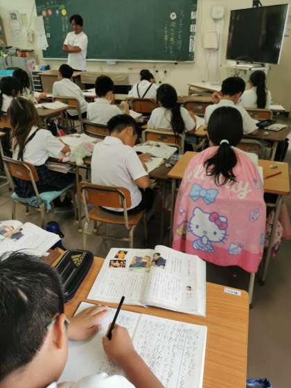 「ジャイアンとぼく」のお話を読んで感想を書いています。ジャイアン役の声優の方の考え方に感心している子が多かったです。