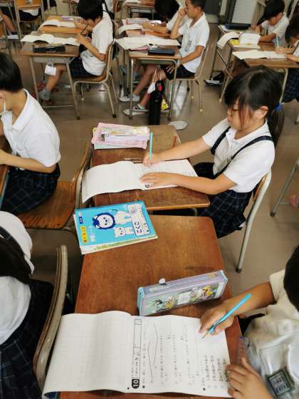 長さの学習についてワークで復習をしています。黙々とこなしていました。