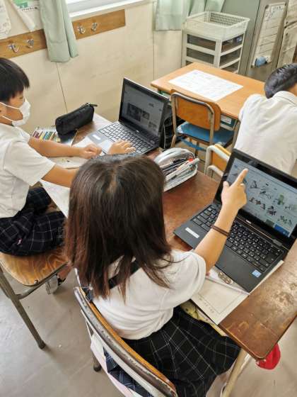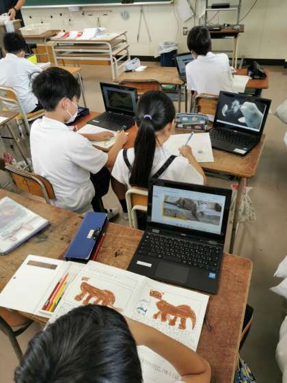 自分たちの生き物図鑑をつくっています。特徴をしっかり書いていたり、イラストをがんばって描いていたりしています。