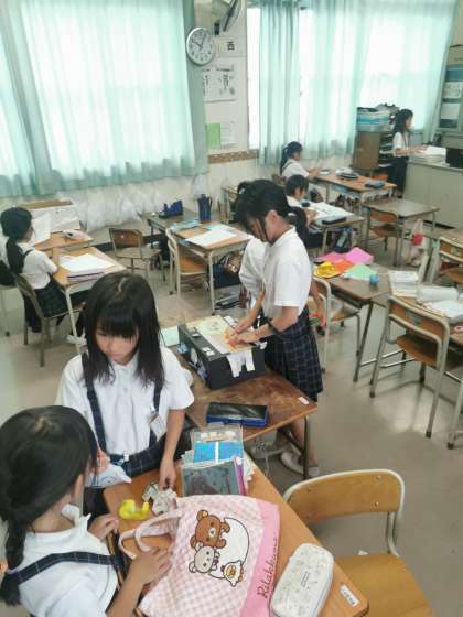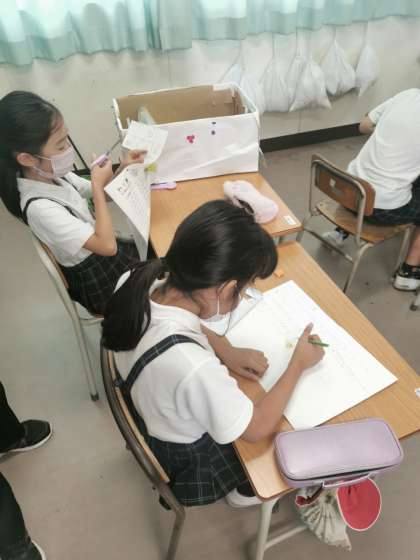 お楽しみ会の準備が着々と進んでいます。司会のセリフを考えてメモしたり物品の用意をしたりしています。