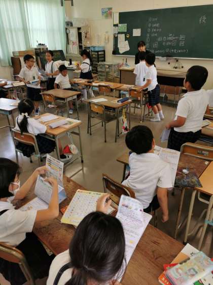 ドリルのまとめをしています。やり直しがある子もいますが一学期の復習をていねいにしています。