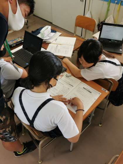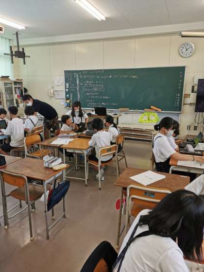 SDGsの学習で考えたことをまとたりポスターにしようとしたりしています。グループによって様々なテーマで考えています。