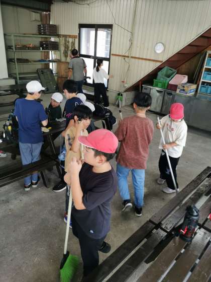 早く終わった人はお手伝いをしたりほうきで掃除してくれたりしています。