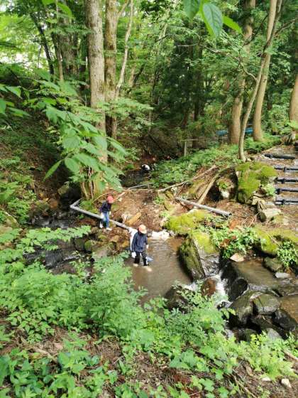 日陰で作業していますが汗をかきながらで暑くなってきました。続いてシャワークライム(沢登り)です。