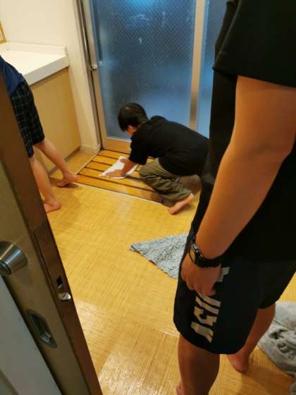 体をいっぱい動かして宿舎に戻ってきました。片付けをしたあと入浴。入浴係がきれいにしてくれています。