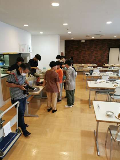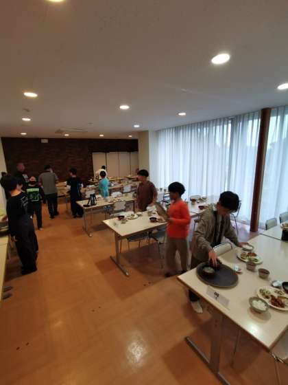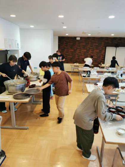 夕食前に食事係が準備してくれています。最初のお仕事からがんばってくれています。