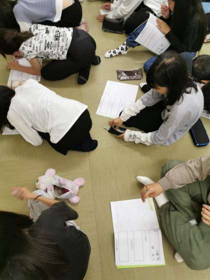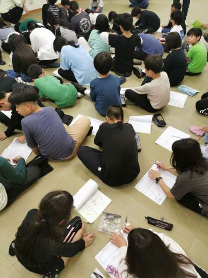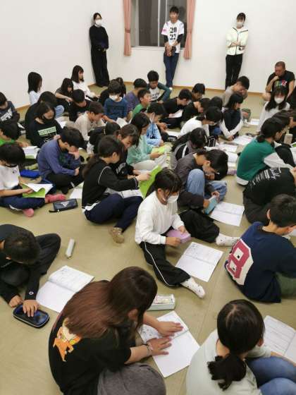 キャンプファイヤーから戻ってきて今日の振り返りをしています。楽しかった一日を思い返しています。
