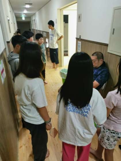 美化係が洗面所の掃除をしてくれています。協力してお仕事してくれています。