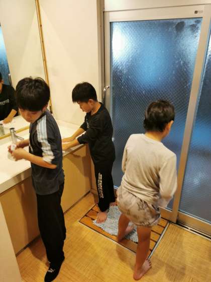 勾玉づくりのあとは入浴の時間。みんなと入れるのが最後だとしみじみ言っている子がいましたが、来年またありますこらね。掃除もして部屋で楽しく過ごしています。