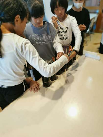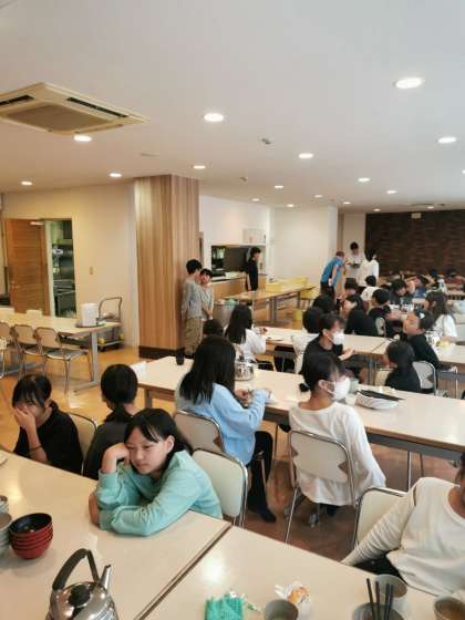 しっかり食べてごちそうさまをしました。また、昨日作った箸も持って帰る用意をしました。大阪で使ってみてください。さて、雨が降ったり止んだりがまた続いています。楽しみにしているナイトハイクはできるでしょうか…