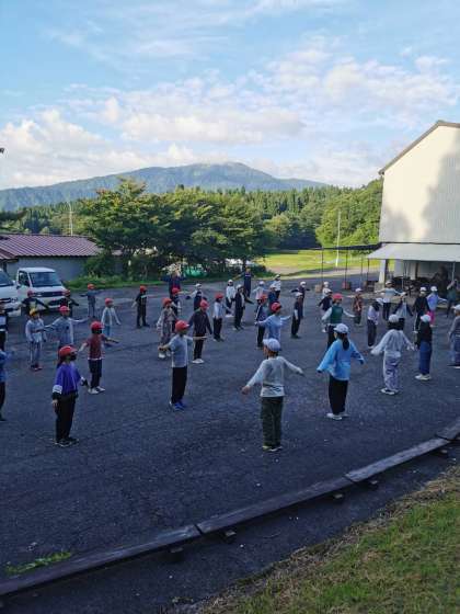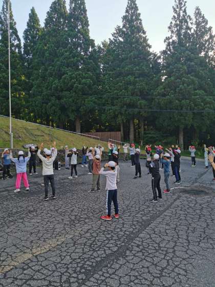 朝は青空が見えています。昨日と違って起床時刻まで寝ている子が多くいました。少しずつ疲れも溜まってきているのでしょう。安全に気をつけて最後の一日を過ごせるようにしたいですね。