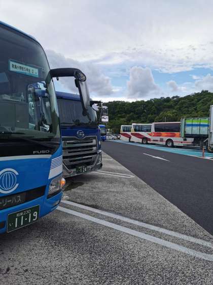 林間から帰ってくる大阪市の小学校のバスがたくさんとまっていました。