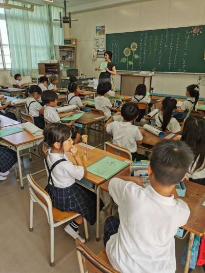 始業式が終わったあと、各学級では持ってきた作品や書類、宿題などを集めたり、2学期の目標を考えたりしました。学級によってはプリントに取り組んだり、係活動を考えたり、席替えをしたりしています。新しい一歩を踏み出しました。