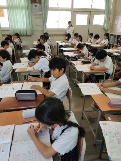 確かめ算を含めた余りのある割り算の学習が続いています。繰り返し繰り返し練習しています。