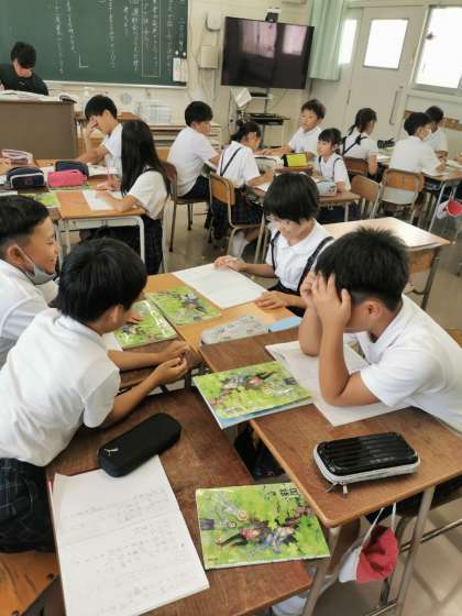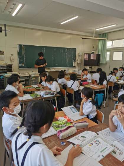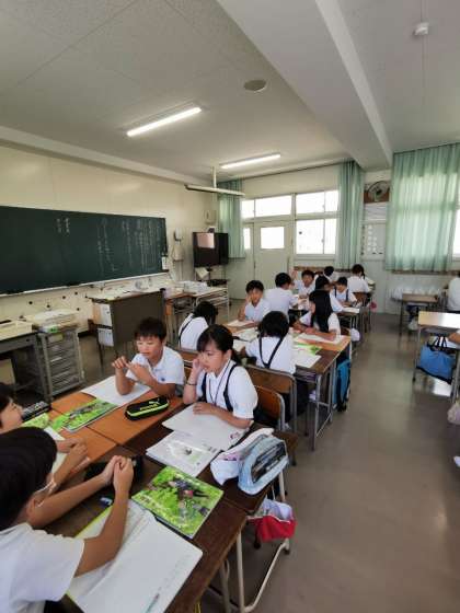 学習で確認した話し合いの仕方をふまえつつ、運動会の目標について各班で話し合いをしています。
