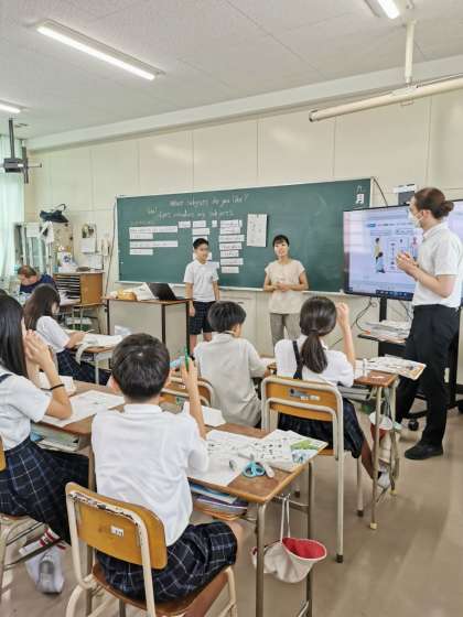 自分の好きな教科を考えて、英語で説明しています。C-NETの先生からの質問にもしっかり答えています。