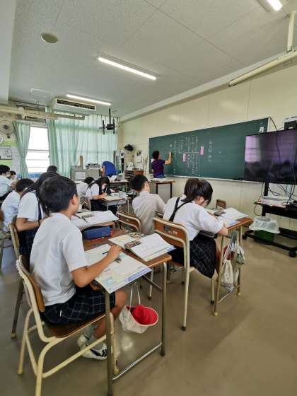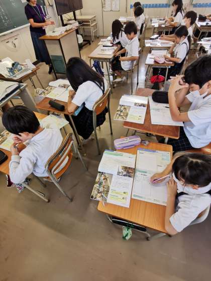 和太鼓に関わる人たちのお話をもとに、古くからのものを大切にすること、一方で古くさいなどマイナスの気持ちが生じることについて、考えを整理しながら自分の考えをまとめていました。