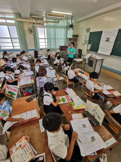 漢字学習が始まっています。ドリルやノートを使っていくので机の上を上手に使う必要があります。机の上の使い方やノートの練習の仕方も合わせて学んでいます。