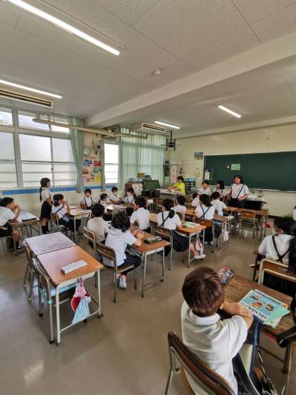 朝の会は今日は司会が3人。それぞれコメントをして、それについての質問が飛び交います。今日は楽しいことが待っているのでいつもより少しテンションが高いような感じもします。