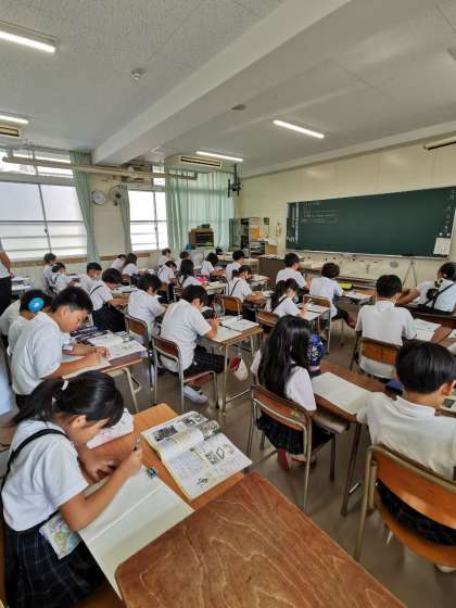 天神祭の学習が続いています。今日は祭りに関わっている人たちについて、役割や思いについて調べています。