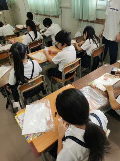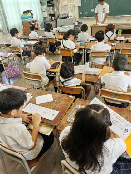 朝の連絡で水曜日に行く社会見学のお話がありました。校区内にある江崎グリコに行きます。そのあと図工で作る木工細工の材料の準備をしました。