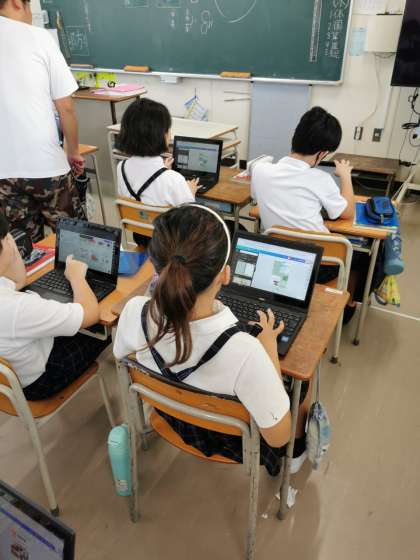 発表の準備をしています。資料の修正をしている人が多いようです。発表の練習のためにセリフを打ち込んでいる人もいました。