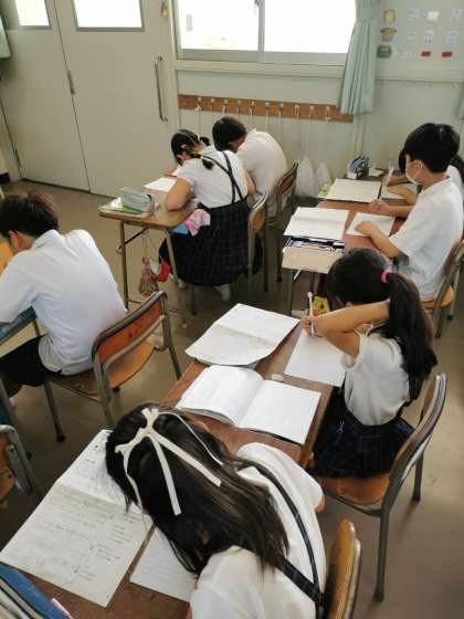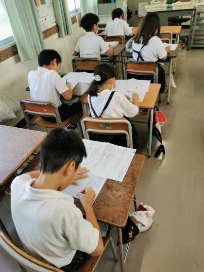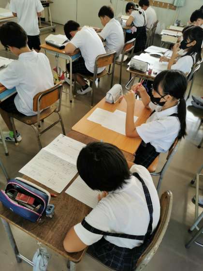 「お願いやお礼の手紙をかこう」の学習をしています。自分に近い人で手紙を書きたい人にあてて手紙の文章を考えています。とても集中しています。