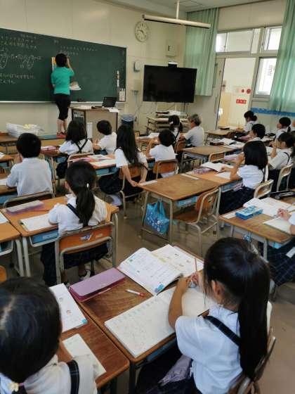 10より大きい数の学習をしています。今日は2桁の足し算について10を分けて足すということを学習しています。
