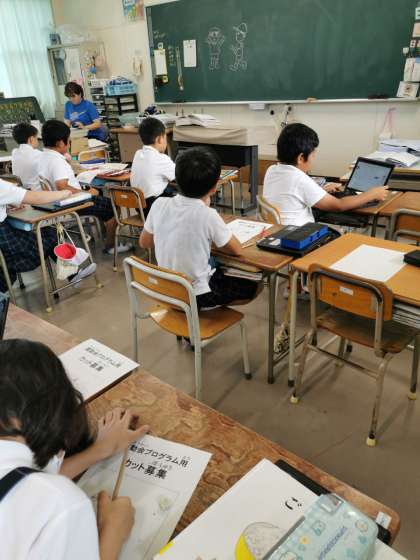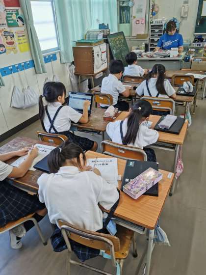 デジタルドリルをしたり、運動会プログラムのイラスト応募用紙に絵を描いていたりしています。