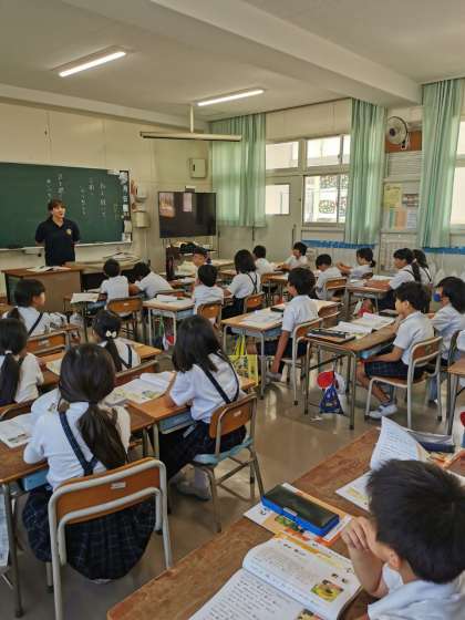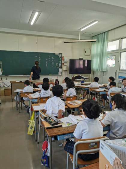 「ねぇ、きいて」というお話をもとに、相手の気持ちを考えてどういう言い方がいいかを考えています。隣の人と言い合いっこをしています。