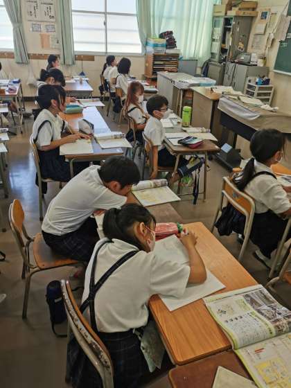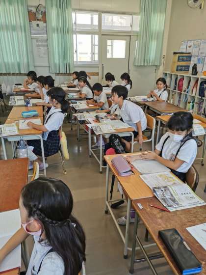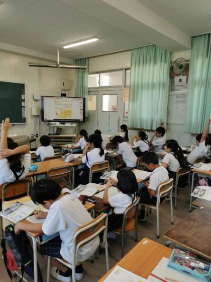 買い物についての学習をしています。まずは資料を参考に、買い物の種類や場所について確認しています。