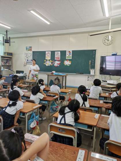 好き嫌いなく、残さず食べることの大切さについて、そして食べ物の3つの栄養についてのお話を聞きました。
