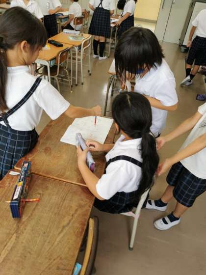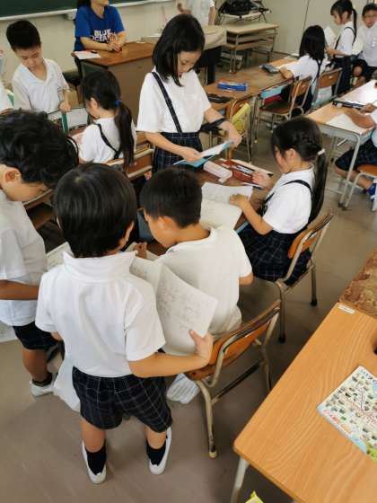 教科書問題の答え合わせをしたあと、やり直しなどしている子にミニ先生が声をかけています。優しく話してくれているようです。