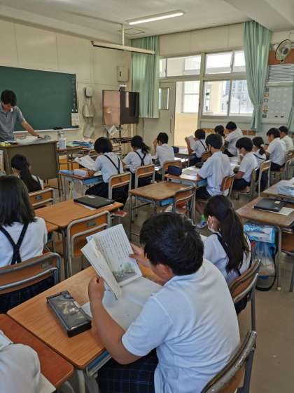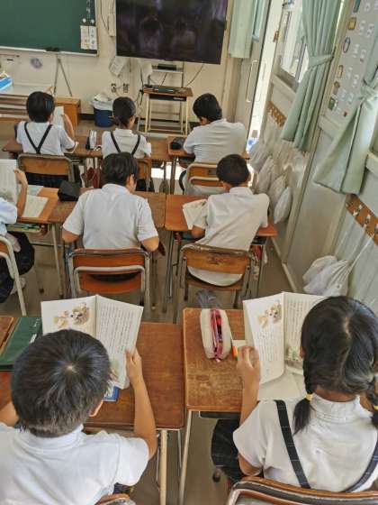 物語文「一つの花」を一人一文ずつ読んでいます。長いお話なのでしっかり読んでいます。